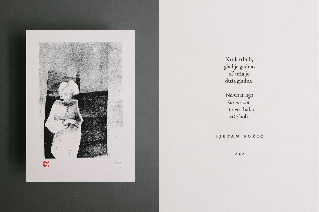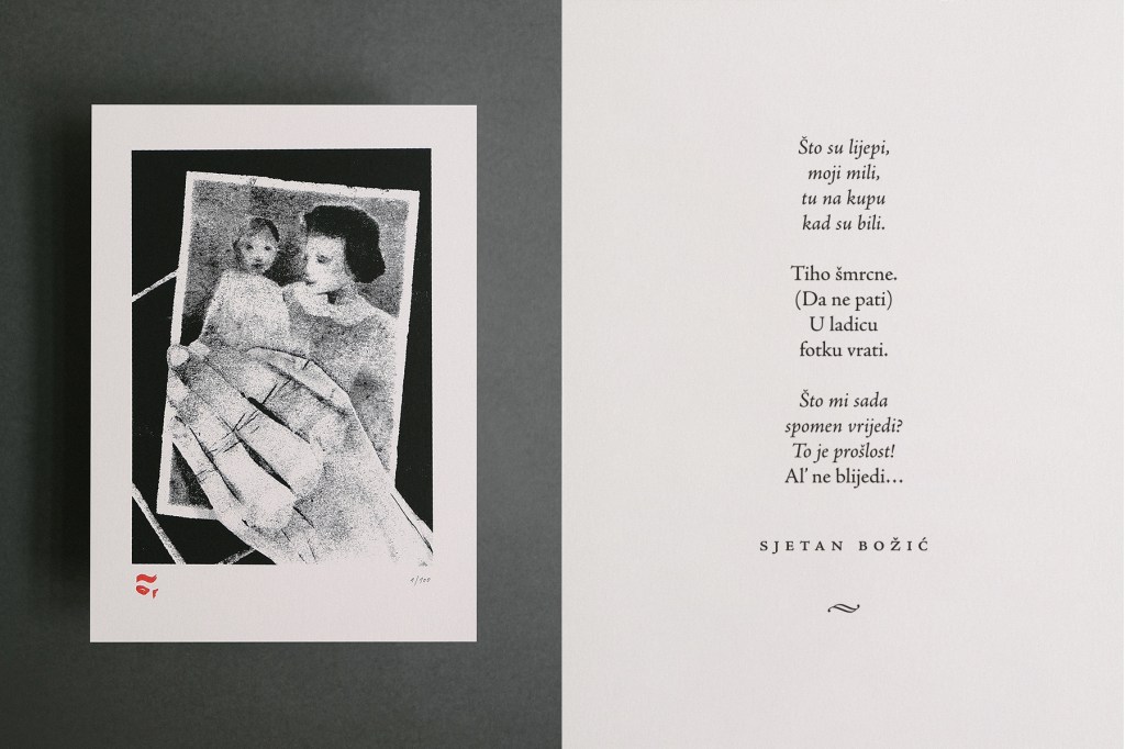 Projekt „Sjetan Božić” želi vas potaknuti da sreću podijelite s onima koji imaju manje razloga za nju: usamljenima, starijima i marginaliziranima. Melankolična zbirka šest autorskih čestitki-grafika i pjesama podsjeća nas na drugu stranu blagdana. U prosinačkoj groznici rijetko tko se sjeti susjede koja živi sama ili jedva pokretnog djedice kojeg svako jutro sreće na tramvajskoj stanici. Želju da nešto poduzmemo lako izguraju svakodnevne obaveze, a upravo je u vrijeme kada se glorificira obiteljsko okruženje, a čovjek je sam i usamljen, povećana i stopa samoubojstava. U svijetu koji troši i gomila, trenutak je postao najtraženija roba i najvrjednija „donacija” koju možemo dati.